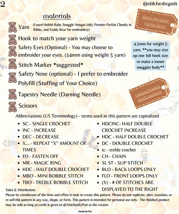 This pattern includes instructions to make Cuddly Teddy Theo. This is an advanced beginner/intermediate pattern. Once the pattern is purchased, you will receive a pdf for both a digital version of the pattern and a printer friendly version. It is advised you download & save the pattern once you open the pattern to avoid loss of files.