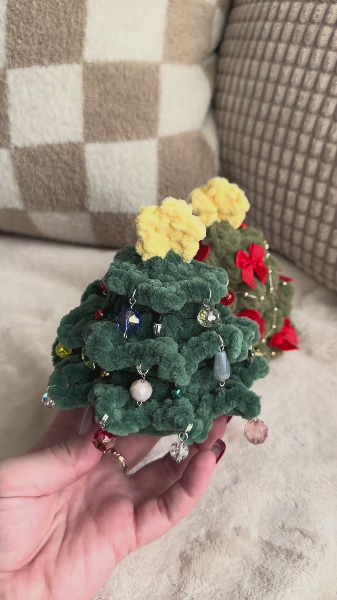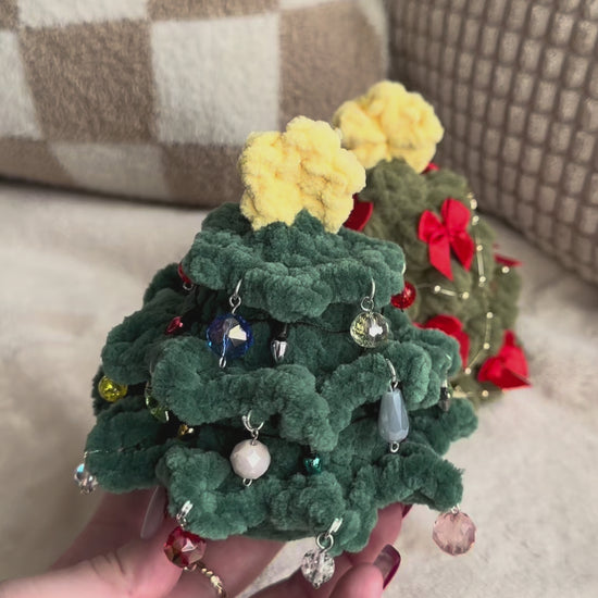 Dark Green Christmas Tree with Faux Lights and Bead Ornaments - Crochet Christmas Tree